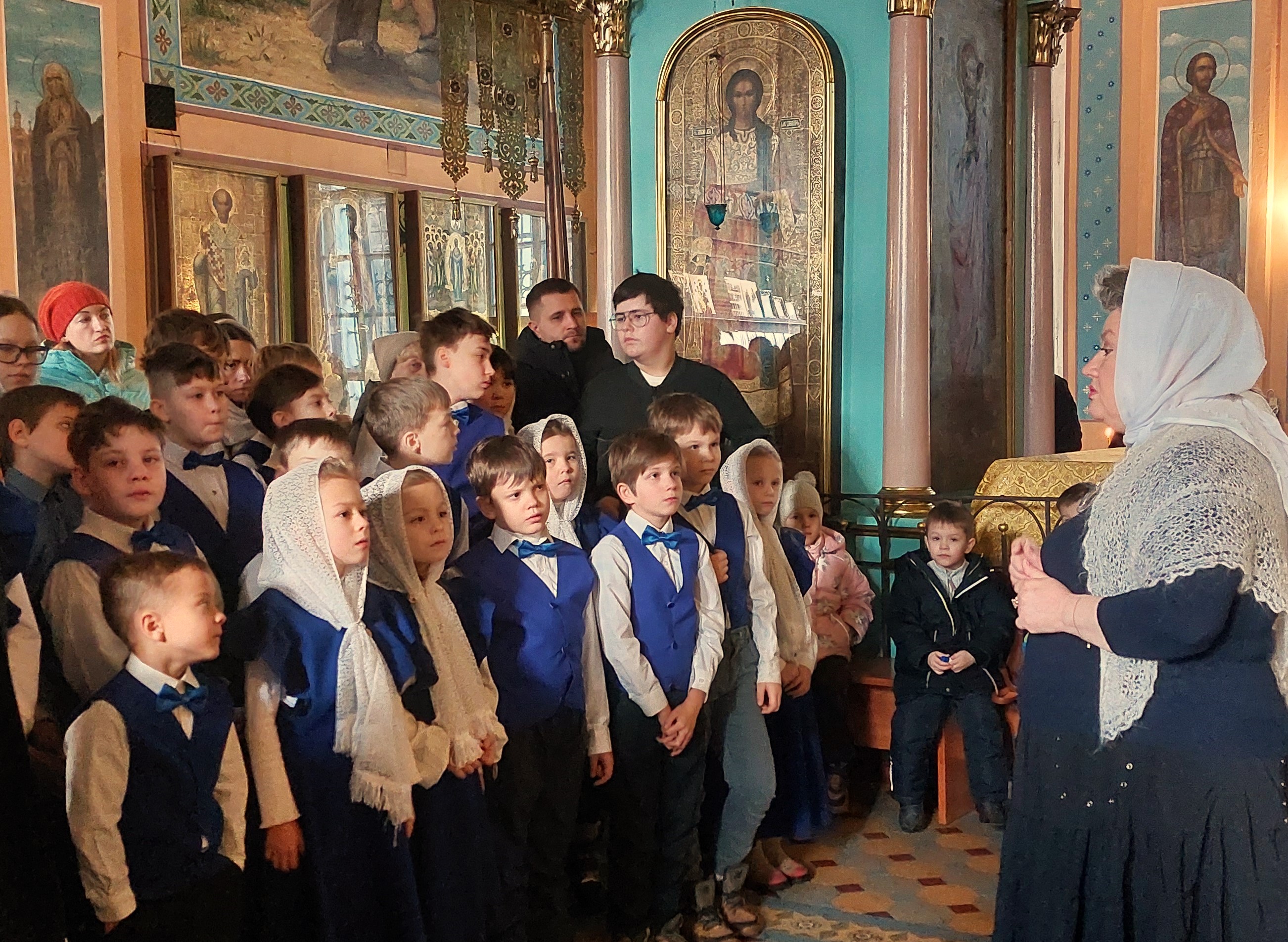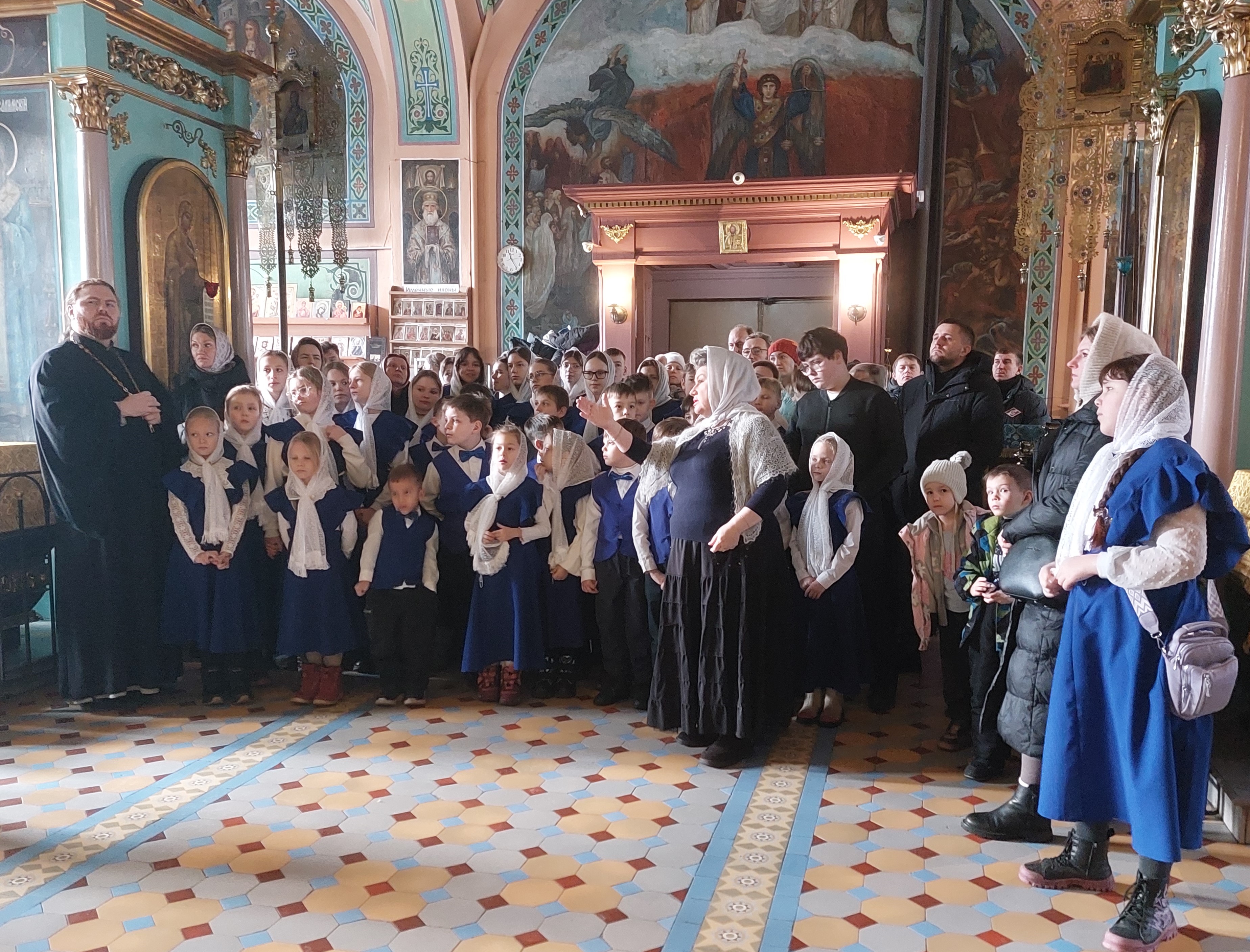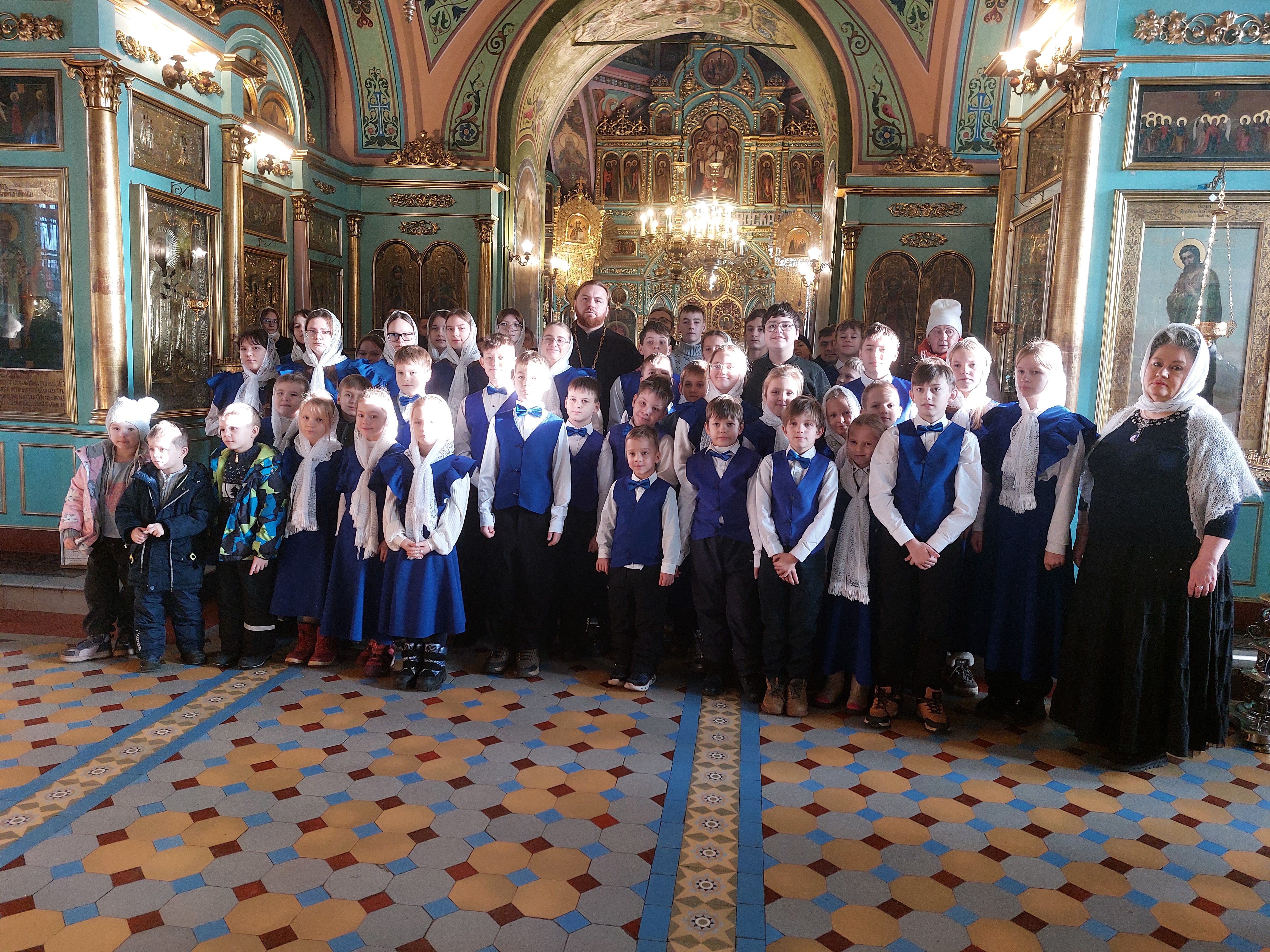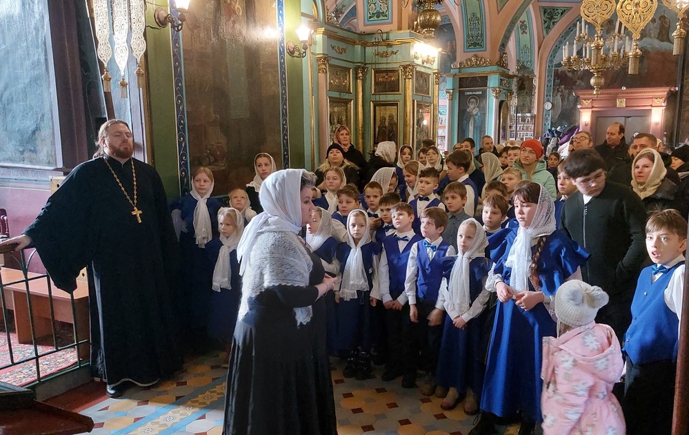 Сегодня, 14 декабря 2025 года, детско-юношеский хор «Благая Весть» под руководством священника Иоанна Борзых посетил Богородицерождественский храм в деревне Нестерово. Руководитель воскресной школы Томашевская А. Ю. провела для ребят и взрослых обзорную экскурсию. Она рассказала об истории храма и его настенной живописи, о новомучениках. Дети исполнили духовные песнопения. В конце встречи все сделали общее фото на память.