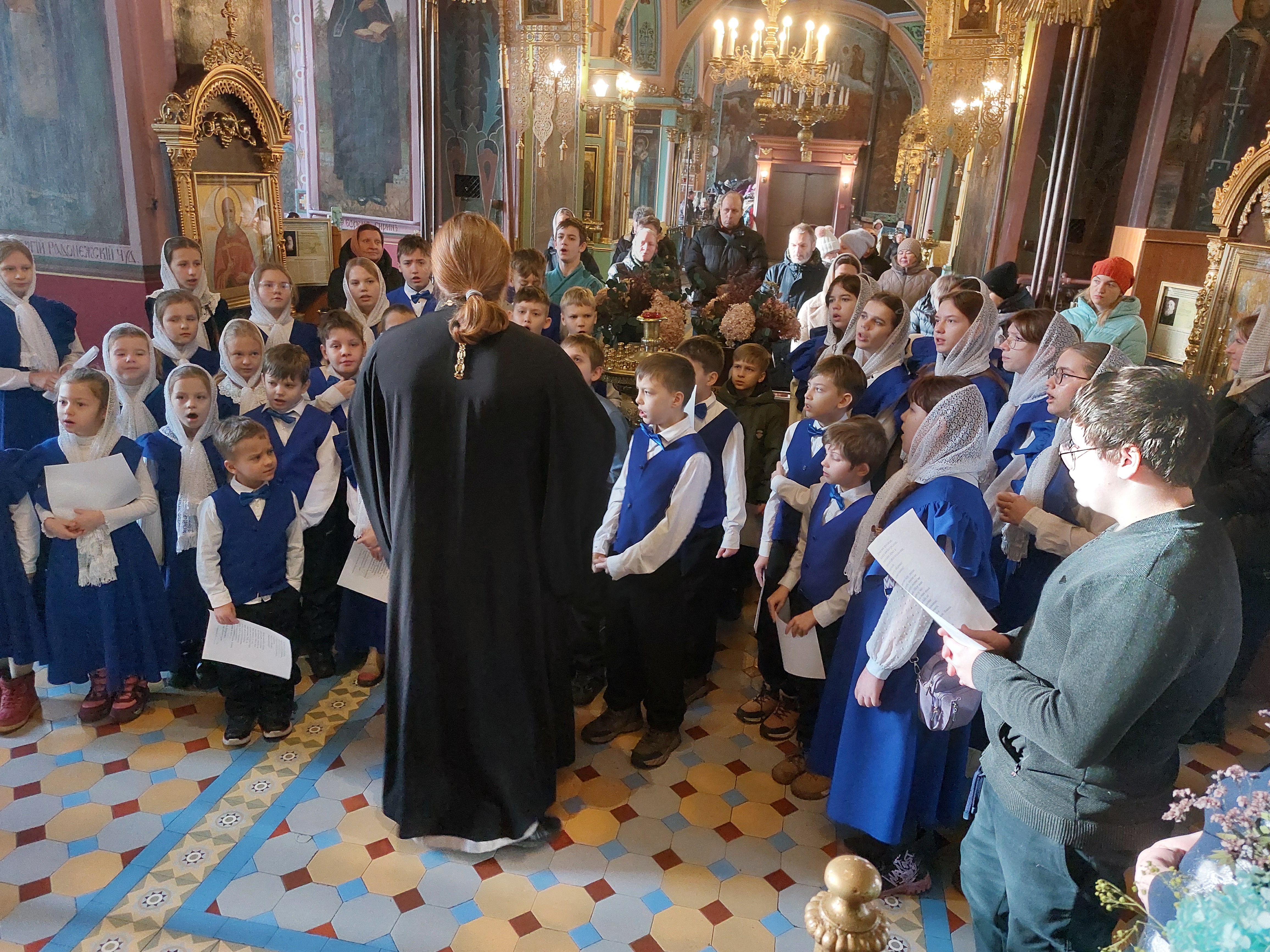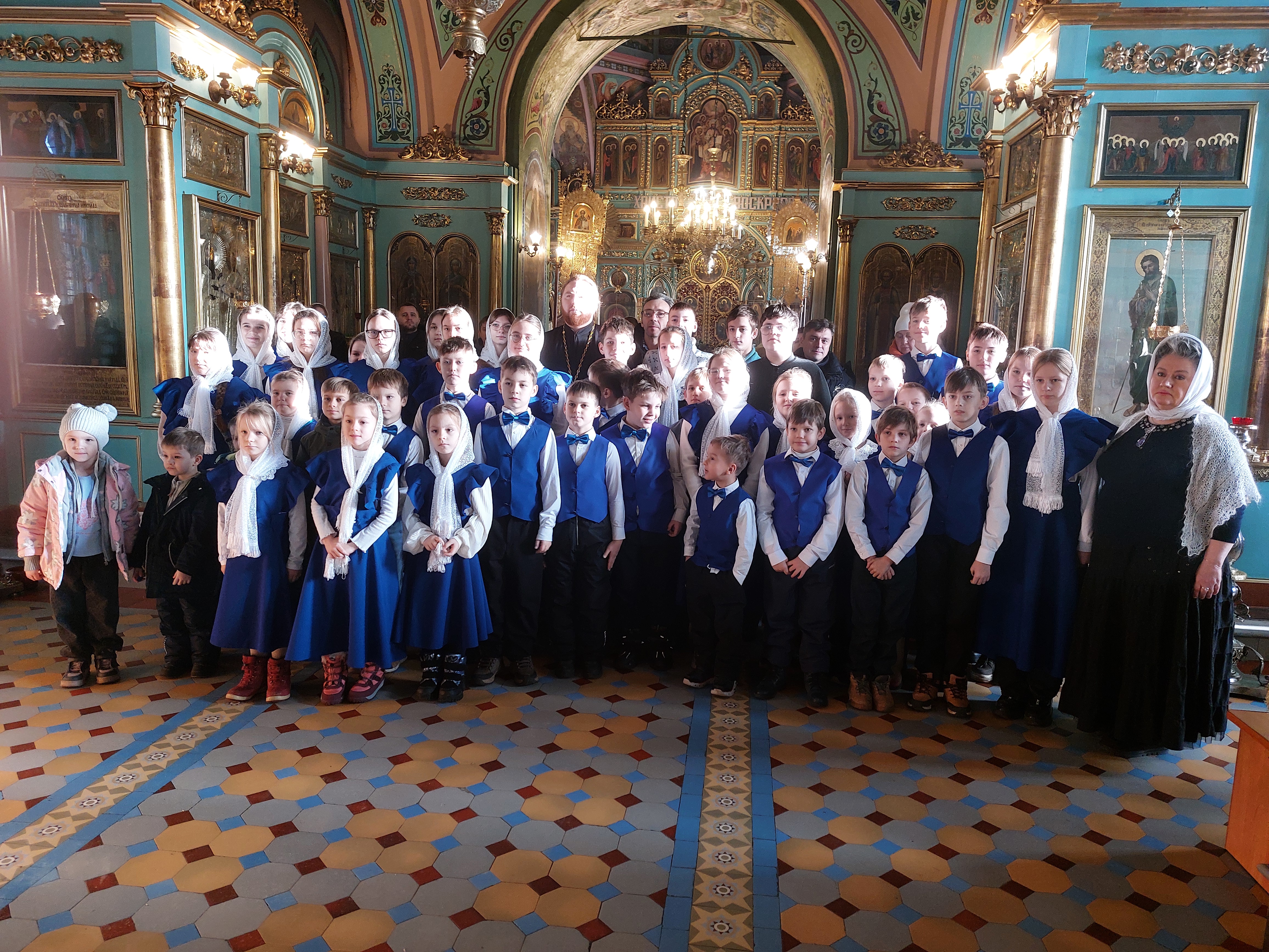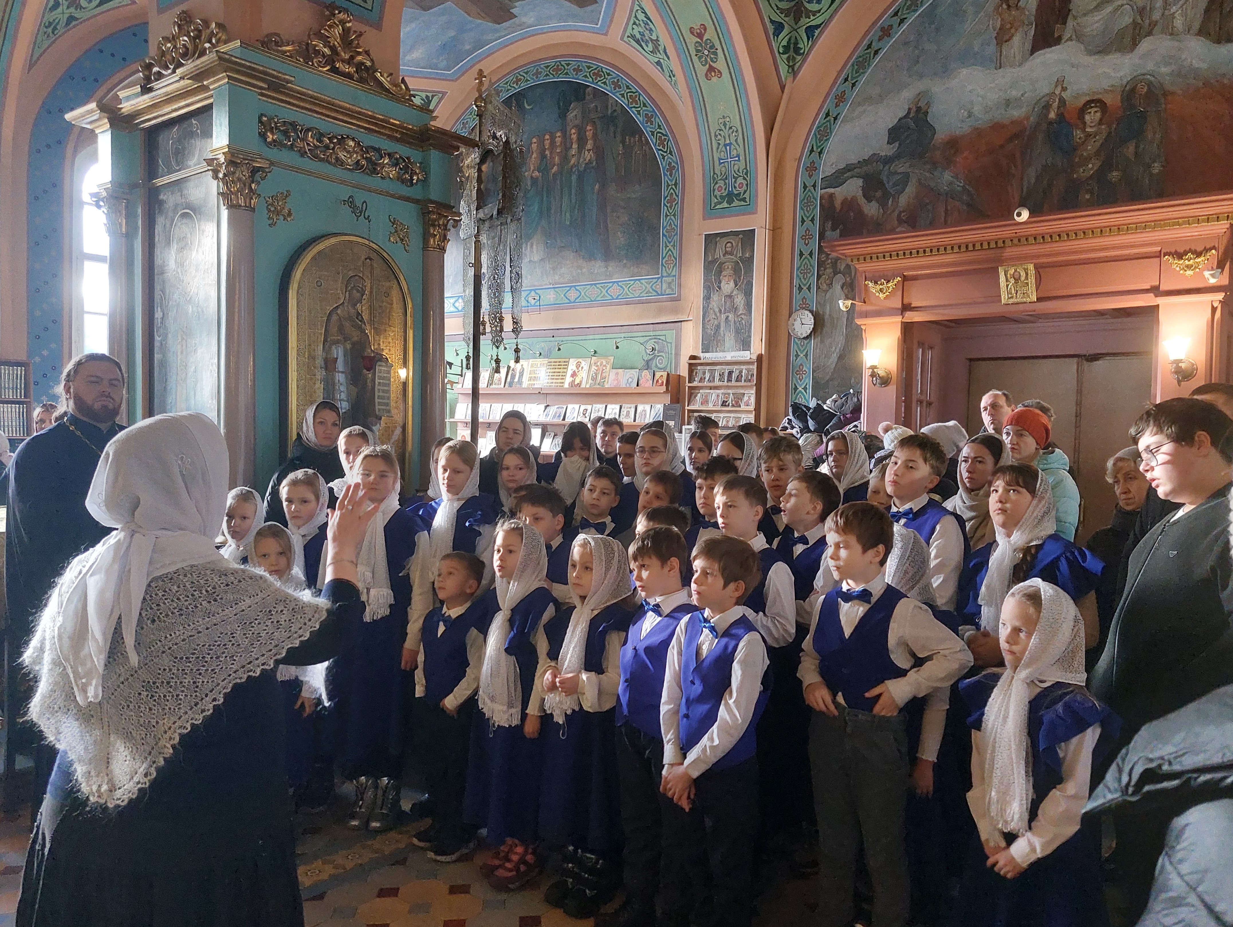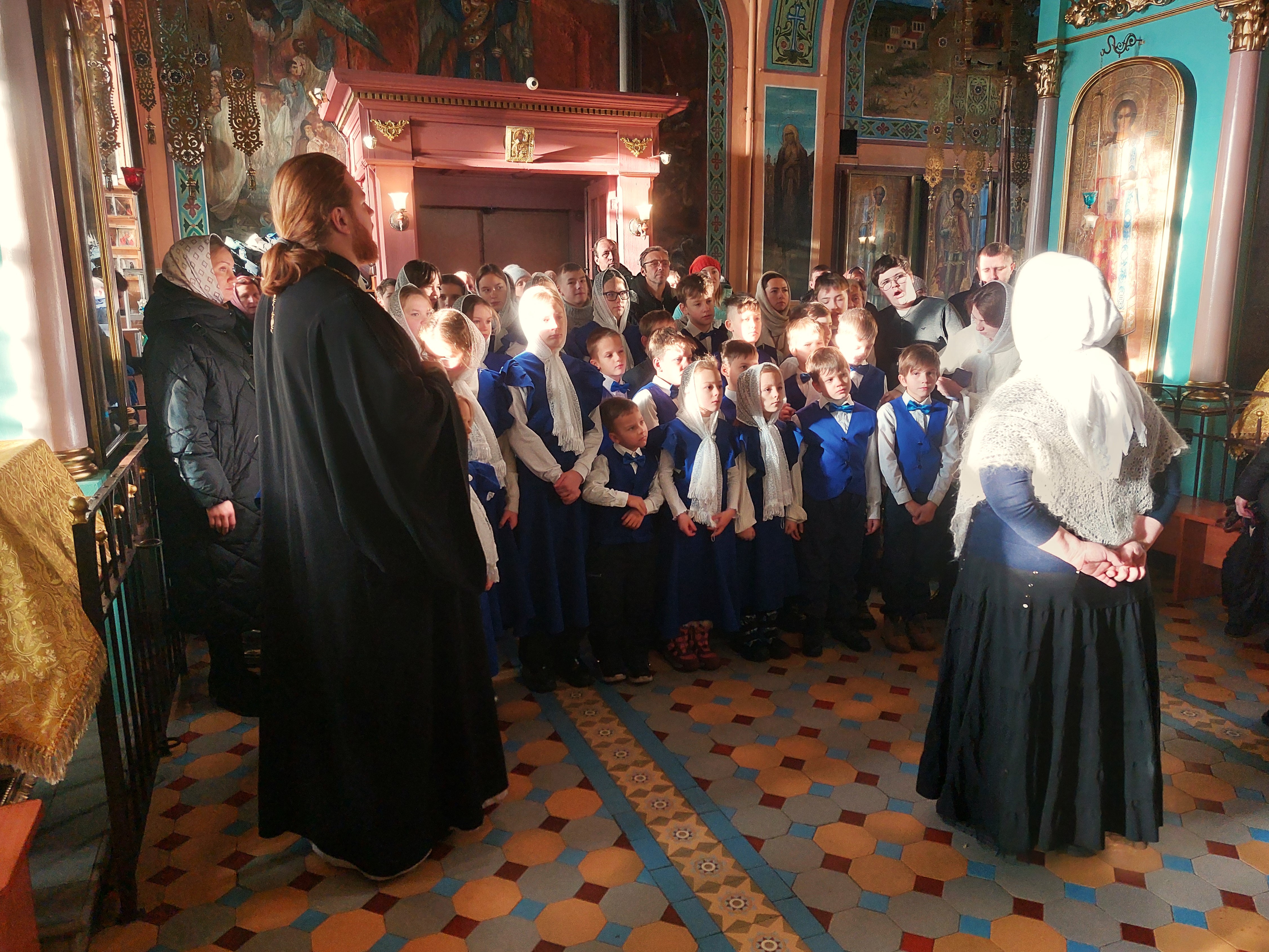 Сегодня, 14 декабря 2025 года, детско-юношеский хор «Благая Весть» под руководством священника Иоанна Борзых посетил Богородицерождественский храм в деревне Нестерово. Руководитель воскресной школы Томашевская А. Ю. провела для ребят и взрослых обзорную экскурсию. Она рассказала об истории храма и его настенной живописи, о новомучениках. Дети исполнили духовные песнопения. В конце встречи все сделали общее фото на память.