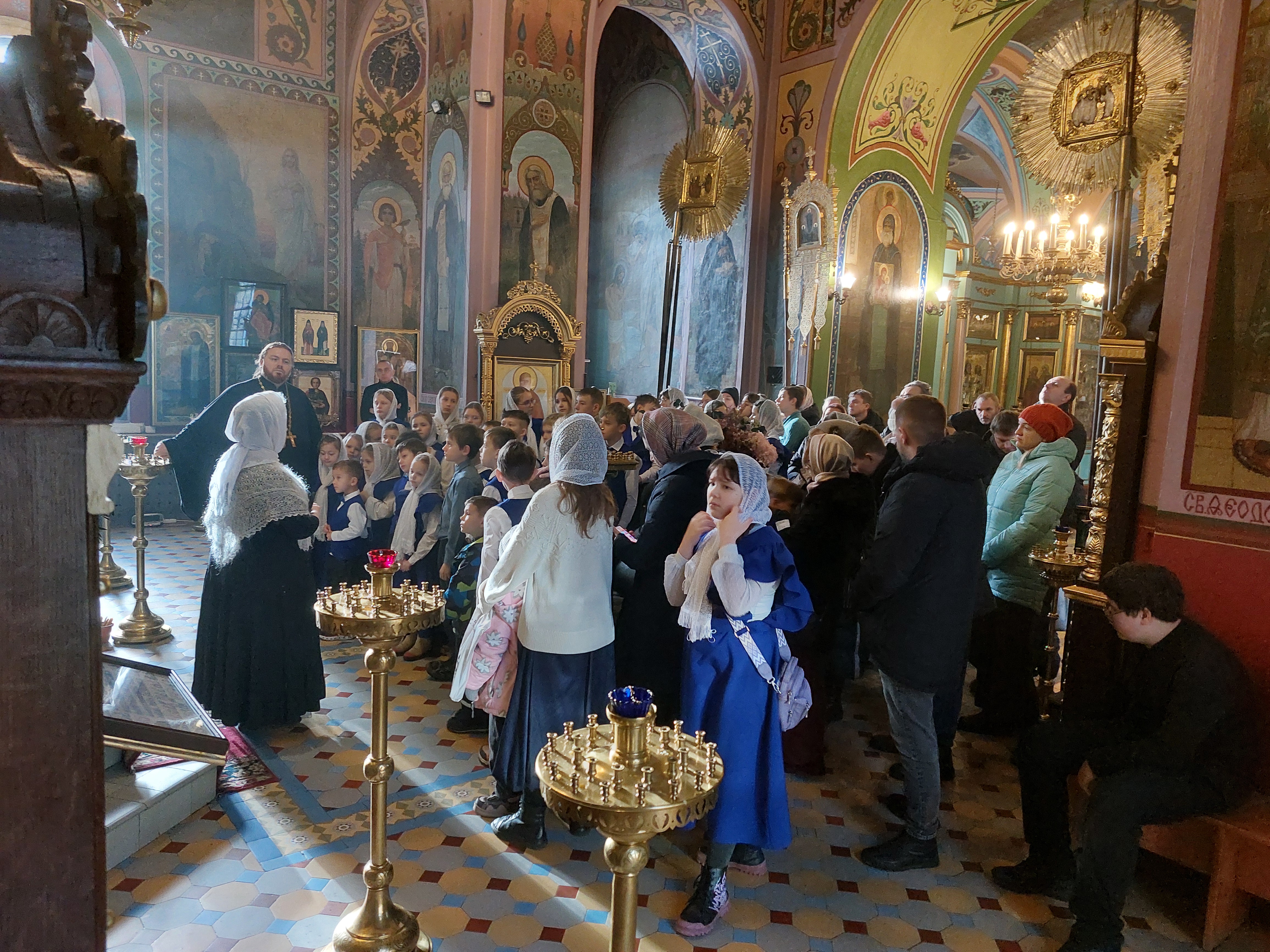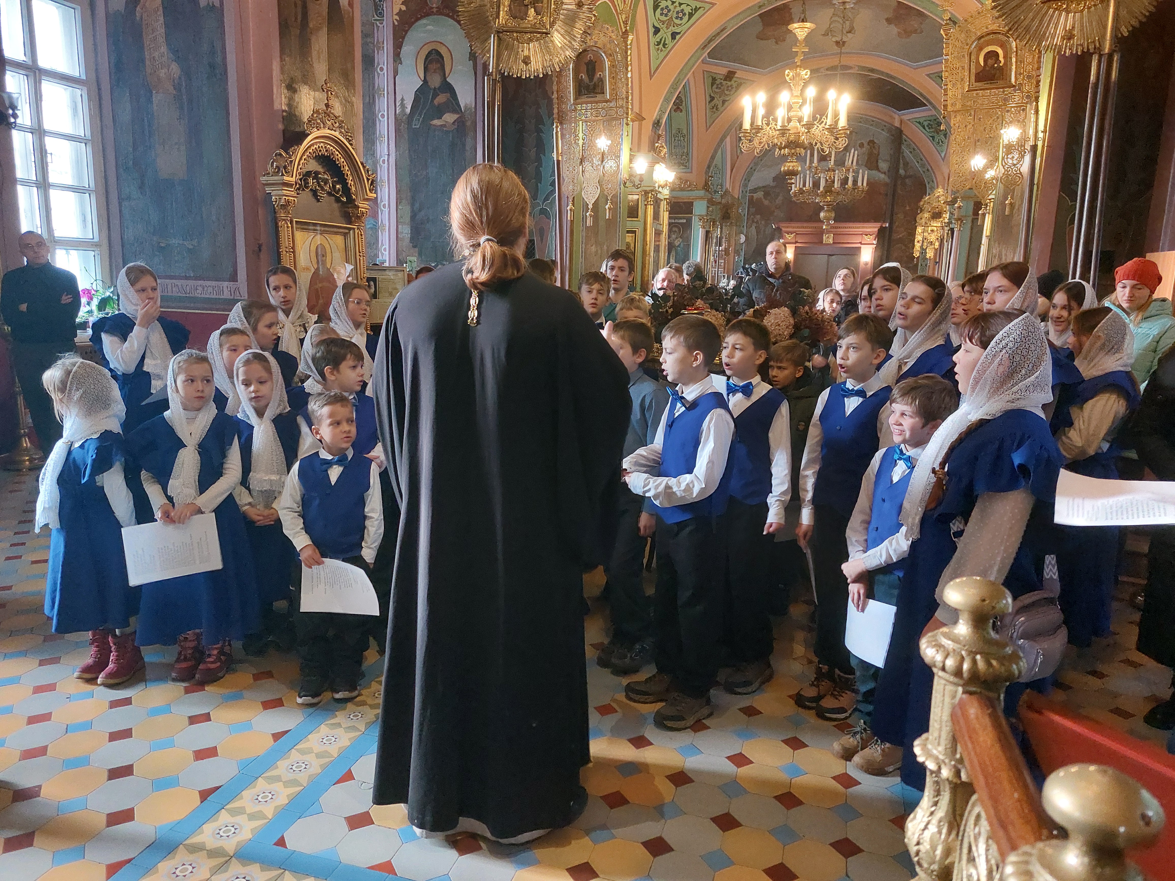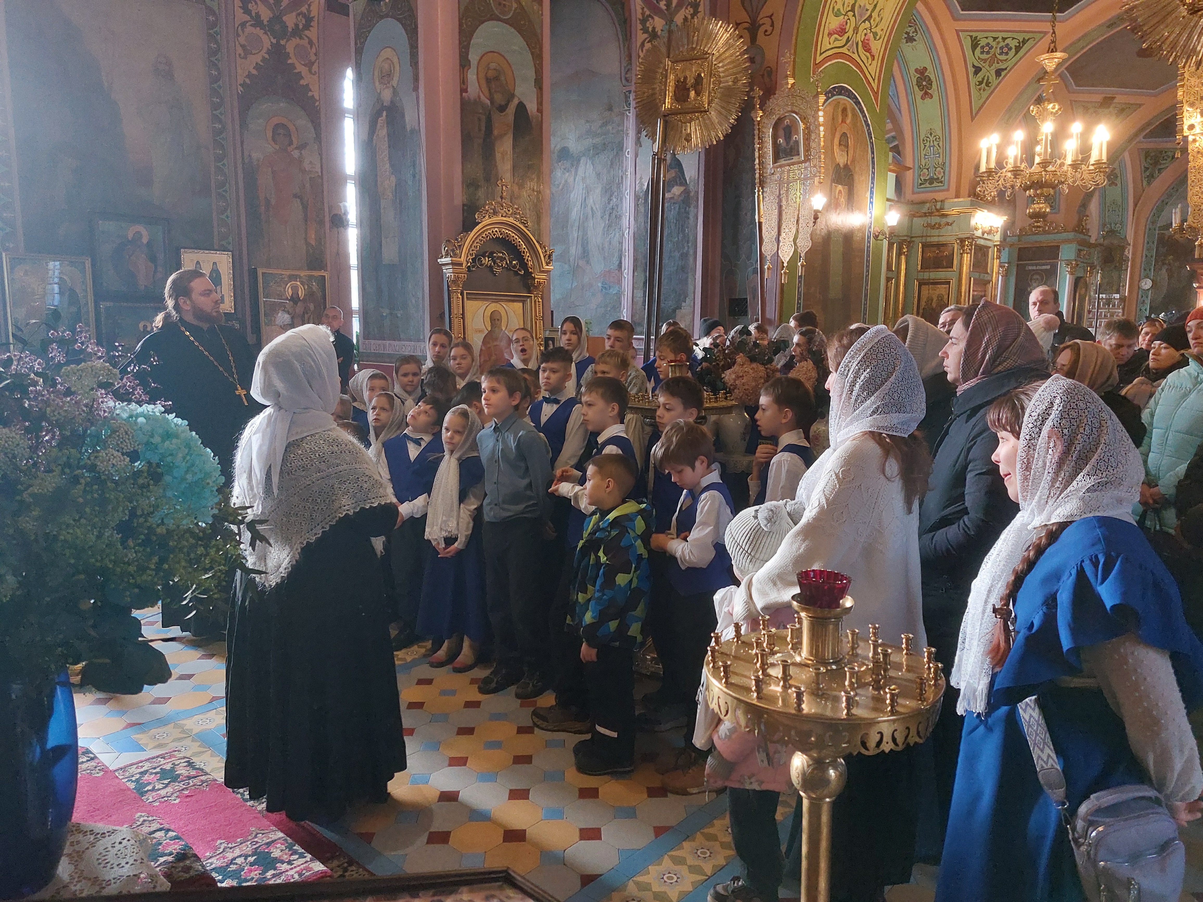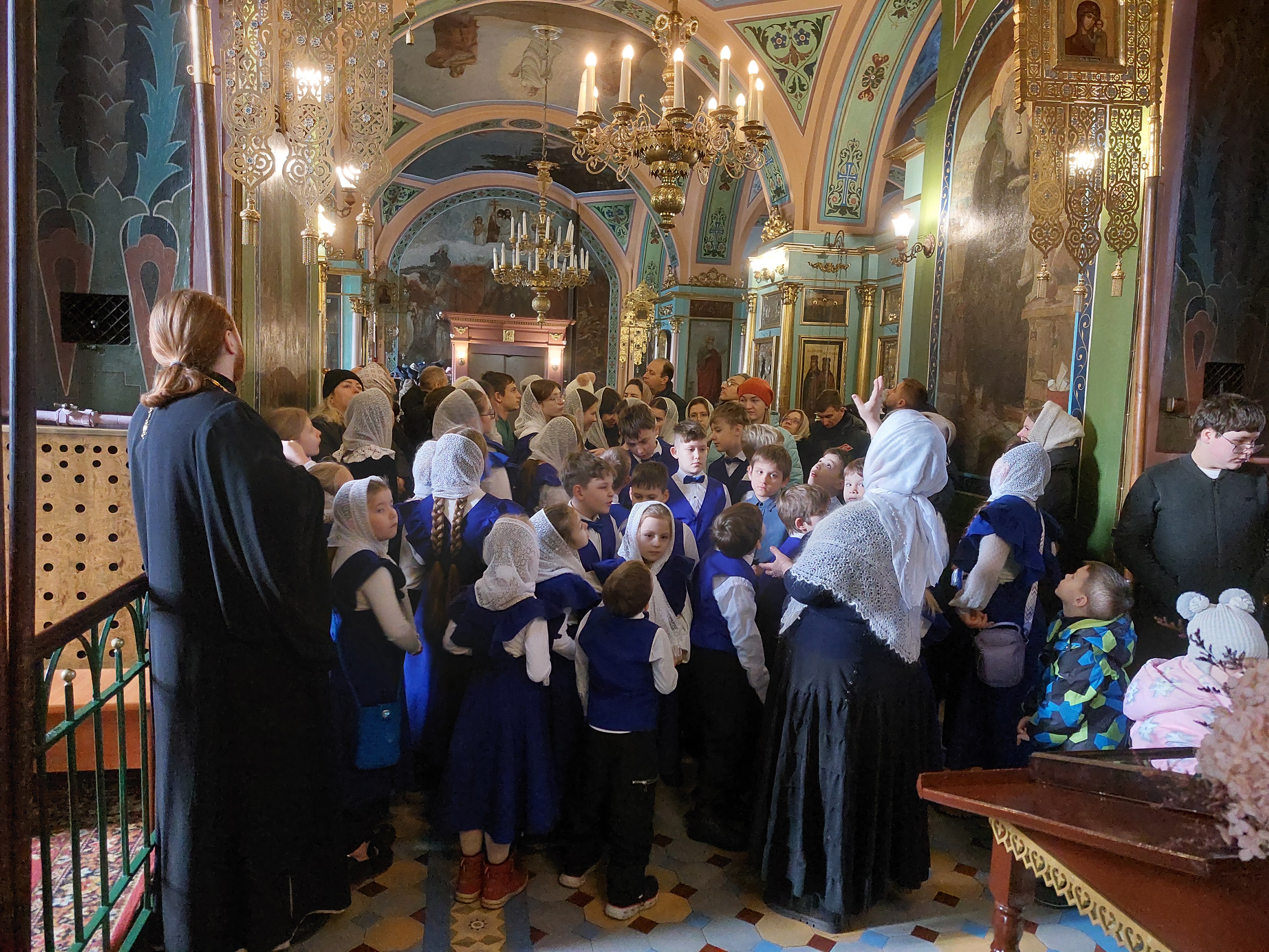 Сегодня, 14 декабря 2025 года, детско-юношеский хор «Благая Весть» под руководством священника Иоанна Борзых посетил Богородицерождественский храм в деревне Нестерово. Руководитель воскресной школы Томашевская А. Ю. провела для ребят и взрослых обзорную экскурсию. Она рассказала об истории храма и его настенной живописи, о новомучениках. Дети исполнили духовные песнопения. В конце встречи все сделали общее фото на память.