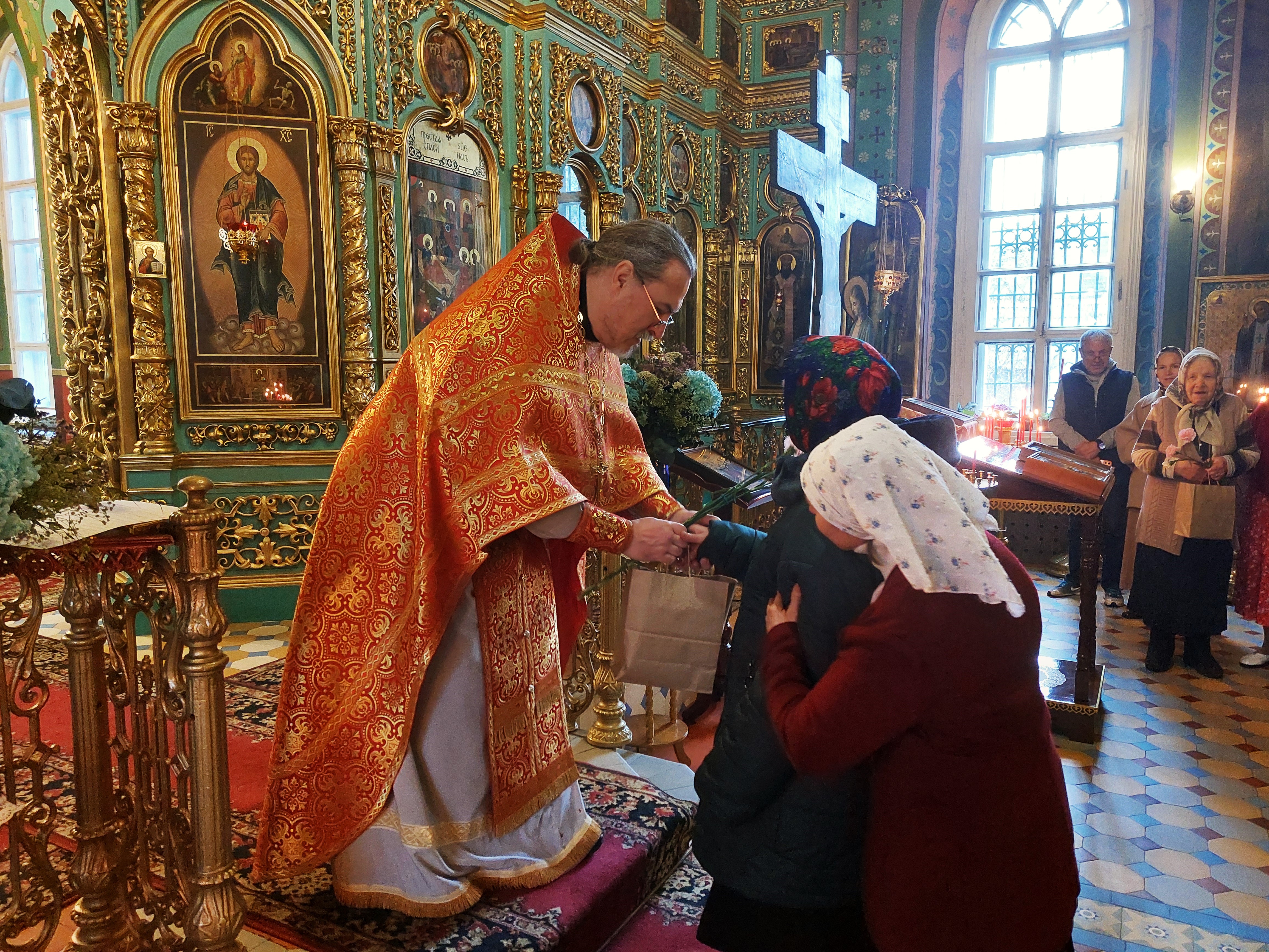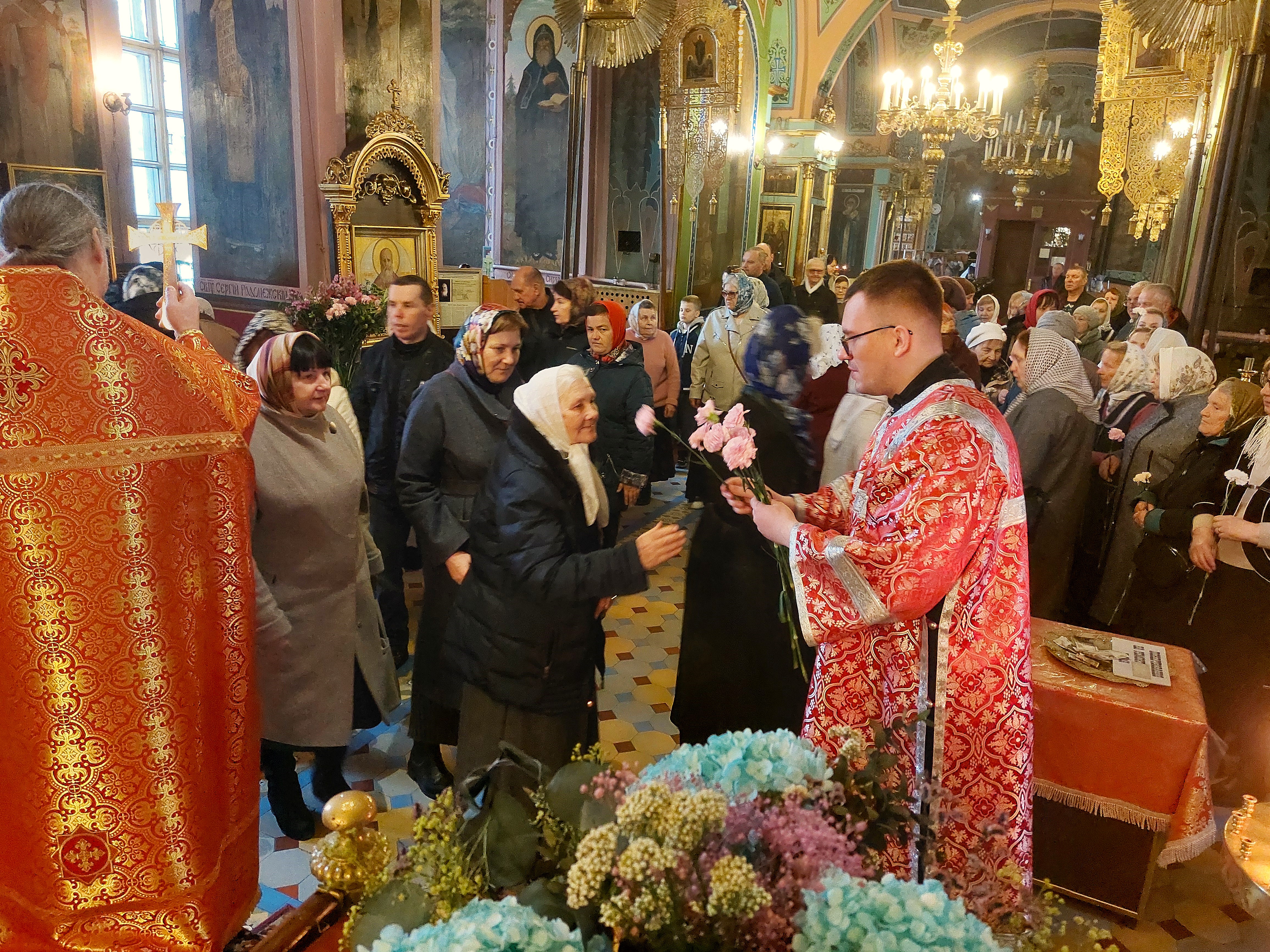 В Богородицерождественском храме д. Нестерово состоялось празднование Недели святых Жен‑мироносиц. По окончании богослужения и тематической проповеди, по многолетней приходской традиции, настоятель храма священник Сергий Томашевский от лица всего прихода вручил цветы и небольшие подарки самым пожилым прихожанкам, а также поздравил всех женщин с этим праздником. Затем все прихожане сделали фото на память. Прихожанок, которые не смогли прийти сегодня в храм, поздравили на дому. Этот праздник — не просто календарная дата в церковном году, а глубокий символ верности, любви и служения. Жены‑мироносицы первыми пришли ко Гробу Господню, неся миро, чтобы помазать им тело Христа. Их поступок, лишённый стремления к славе или наградам, стал вечным примером бескорыстного служения Богу и ближним. Более того, именно Жены‑мироносицы стали первыми свидетелями Воскресения Христова и первыми вестницами Пасхи! Само миро — благовонное масло, которое использовали для погребения, — в контексте Воскресения приобретает новый смысл: оно символизирует собою не смерть, а Жизнь, не печаль, а радость. Такая приходская традиция, не даёт празднику превратиться в формальность, а превращает его в момент встречи поколений и становится не только воспоминанием о событиях двухтысячелетней давности, но и живым призывом быть верными церкви и семье, любить Бога и ближних, а так же хранить традиции, соединяющие нас с Евангельской вечностью.